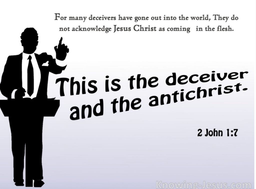 2 John 4 NIV – 7 I say this because many deceivers who do not acknowledge Jesus Christ as coming in the flesh have gone out into the world. Any such person is the deceiver and the antichrist. 8 Watch out that you do not lose what we have worked for, but that you may be rewarded fully.