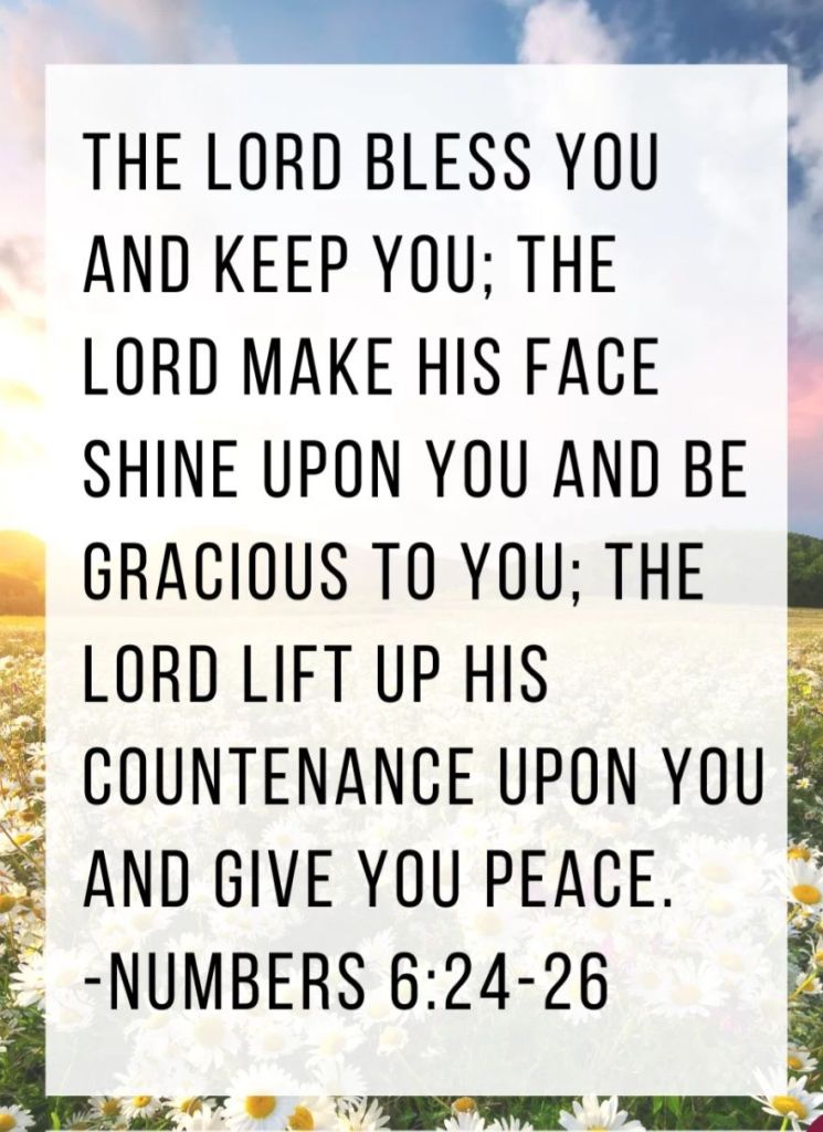 Numbers 6:24-26 NIV – 24 The Lord bless you and keep you; 25 the Lord make his face shine on you and be gracious to you;