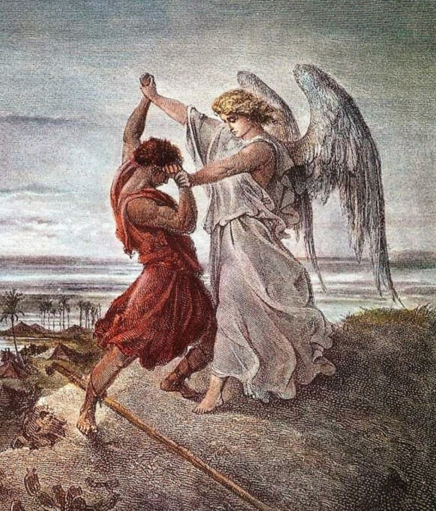 Genesis 32:22–28 (NIV): 22 That night Jacob got up and took his two wives, his two female servants and his eleven sons and crossed the ford of the Jabbok. 23 After he had sent them across the stream, he sent over all his possessions. 24 So Jacob was left alone, and a man wrestled with him till daybreak. 25 When the man saw that he could not overpower him, he touched the socket of Jacob’s hip so that his hip was wrenched as he wrestled with the man. 26 Then the man said, “Let me go, for it is daybreak.” But Jacob replied, “I will not let you go unless you bless me.”