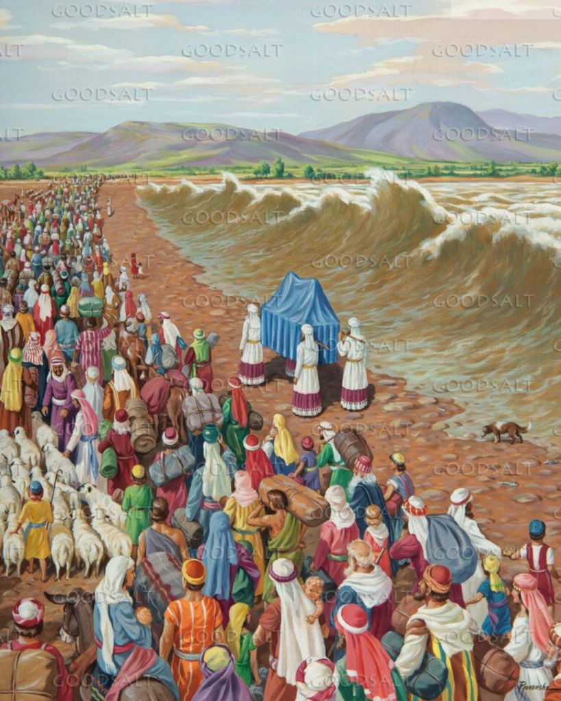 Joshua 3:9–11, 13–17 (NIV): 9 Joshua said to the Israelites, “Come here and listen to the words of the LORD your God. 10 This is how you will know that the living God is among you and that he will certainly drive out before you the Canaanites, Hittites, Hivites, Perizzites, Girgashites, Amorites and Jebusites. 11 See, the ark of the covenant of the Lord of all the earth will go into the Jordan ahead of you. 13 And as soon as the priests who carry the ark of the LORD—the Lord of all the earth—set foot in the Jordan, its waters flowing downstream will be cut off and stand up in a heap.” 14 So when the people broke camp to cross the Jordan, the priests carrying the ark of the covenant went ahead of them. 15 Now the Jordan is at flood stage all during harvest. Yet as soon as the priests who carried the ark reached the Jordan and their feet touched the water’s edge, 16 the water from upstream stopped flowing. It piled up in a heap a great distance away, at a town called Adam in the vicinity of Zarethan, while the water flowing down to the Sea of the Arabah (that is, the Dead Sea) was completely cut off. So the people crossed over opposite Jericho. 17 The priests who carried the ark of the covenant of the LORD stopped in the middle of the Jordan and stood on dry ground, while all Israel passed by until the whole nation had completed the crossing on dry ground.